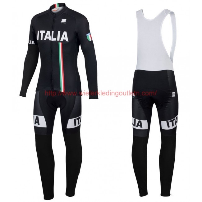 2016 Sportful Italy IT zwart Winter Set Wielerkleding Wielershirt lange mouw+Lange fietsbroeken Bib ..